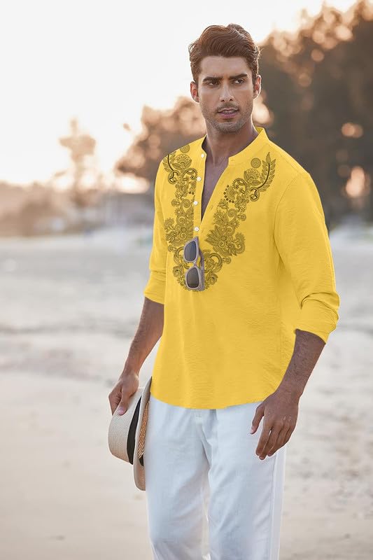 Showcase a perfect blend of tradition and trend with this men’s Printed short kurta crafted from a soft, breathable cotton blend. Designed with an eye-catching ethnic pattern across the chest, this kurta brings festive flair to everyday comfort. The full-sleeve silhouette, mandarin collar, and half-button placket add timeless appeal, while the textured finish enhances its modern aesthetic. Ideal for casual events, cultural functions, or holiday travel, this kurta is lightweight and easy to style. Pair it with your favorite jeans, chinos, or pyjamas to create multiple looks, whether you’re attending a casual get-together or a traditional celebration. The fabric is skin-friendly and designed for comfort throughout the day. This Front Printed kurta will surely earn a prime spot in your ethnic wardrobe as a statement piece that offers both ease and elegance.